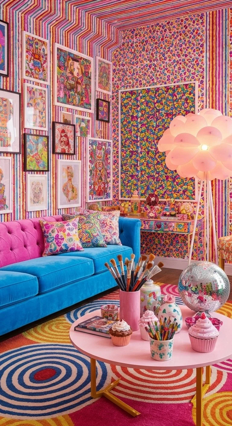 Your ideal art space is a maximalist dream — clashing patterns, layered art walls, sculptural furniture,